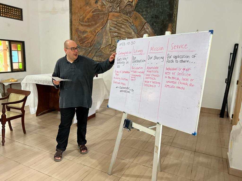 The initial sessions on introducing the Aggregates to our Province took place at St. Anne’s Shrine, Thalawila on October 30th and 31st, 2023. Fr. Priyantha, SSS, the Councillor in charge of Aggregates coordinated the whole program. We were privileged to have Fr. Darren Malsen, SSS, the Provincial Vicar and Provincial Treasurer from the UK-Ireland Province to lead us with the input sessions. We are grateful to him for his clear and practical sessions, presenting the concept of Aggregates and its important to our Sri Lankan context. The group discussions on the second day gave ample opportunity for everyone to express themselves in their own vernacular language, which was later summarized and presented by the coordinator of each group.