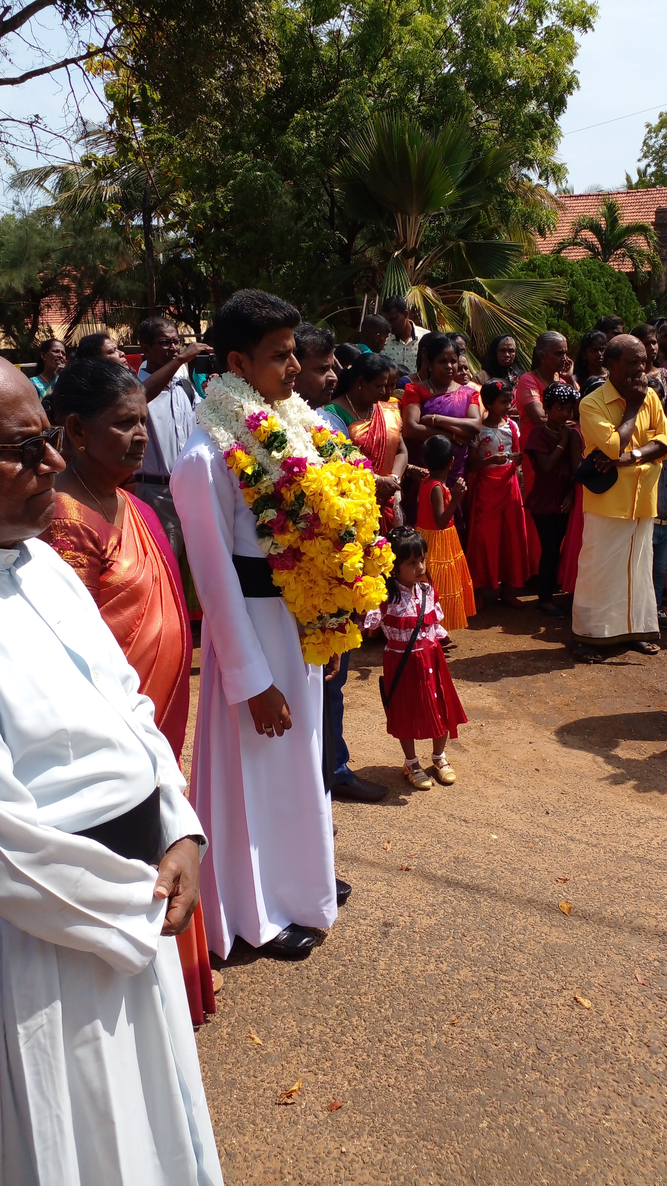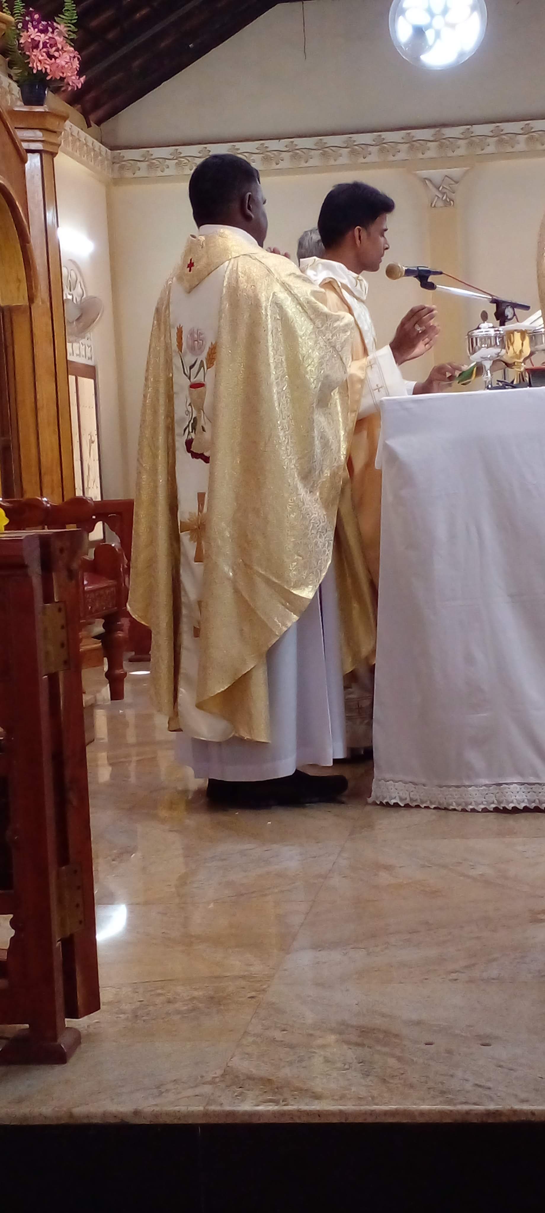 Then, Fr. Santana was honoured by poems, songs, cultural dances, speeches and gifts. During the ceremony all and sundry were given refreshment. The felicitation ceremony was culminated with the acknowledgment talk by Fr. Santana. In his address; he thanked the parish priest and the parish community for organizing his First Thanksgiving public Mass meaningfully and placidly. He acknowledged the ardent support of his family, and all those who were the sources of strength during his journey towards priesthood. He appreciated the hard work done by his colleagues, friends and well-wishers to make the event of his life a success. After the ceremony the priests, religious and some distinguished invitees were served a delicious meal at the parish hall. Subsequently, Fr. Santana with his family members proceeded to his biological home where the family hosted a reception for relatives, neighbours and friends.
