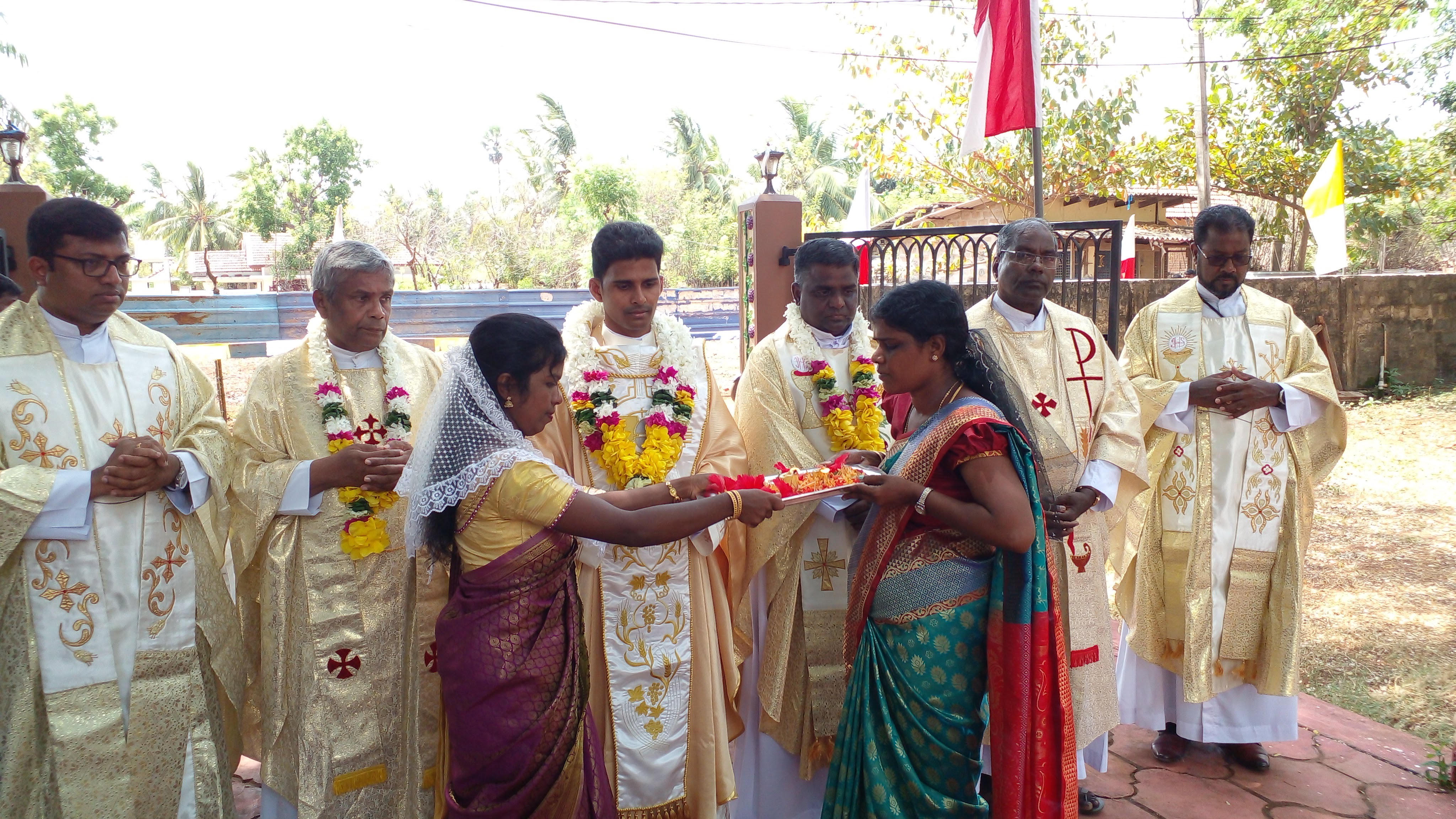 At the end of the Eucharistic celebration a protracted felicitation ceremony was conducted by the parish community for the new priest. Revd. Fr. C. G. Jeyakumar, the parish priest and the dean of the Illavalai deanery, delivered an inspiring speech emphasizing on the importance for a priest to be a role-model in this challenging and digital world. Furthermore, on behalf the parish community he thanked God for the gift of vocation from his parish and for choosing Fr. Santana to be an ‘other Christ’ in the SSS Way of Life.